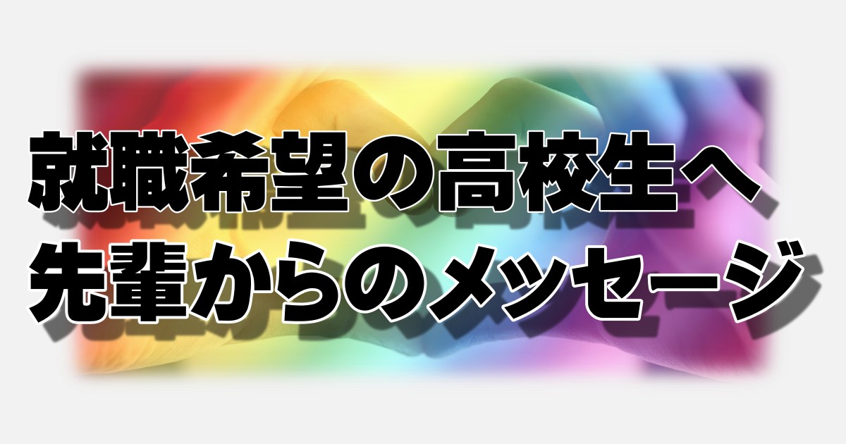 私の体験話で長くなりましたが、これから就職活動して少しでも後悔しないように、先生やご両親の意見も大事だとは思いますが、自分自身で納得いくまでたくさん考えて職場見学してみて、ここでよかったと思える就職先が見つかることを陰ながら願っています。